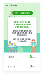 리틀홈 앱 내에서 소개된 장소들을 방문하면지역과 테마에 따라 스탬프를 모으며